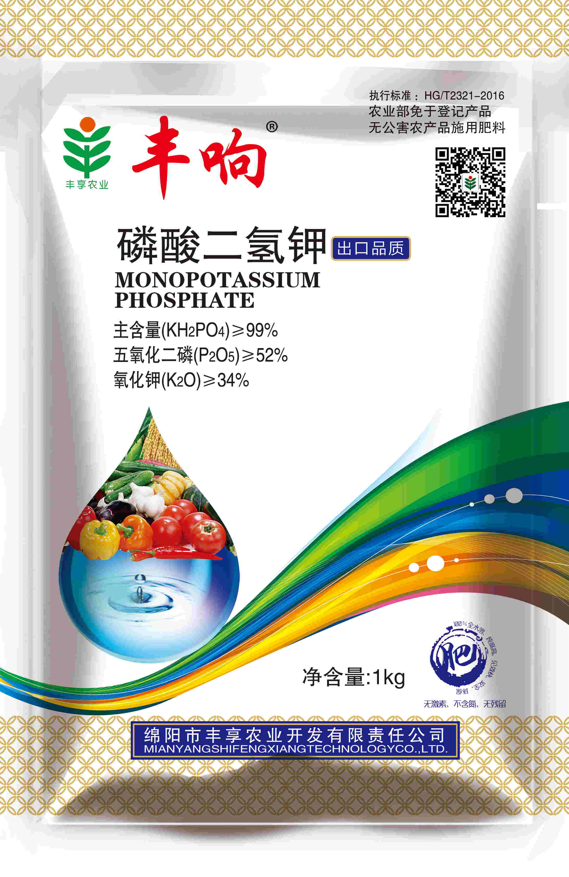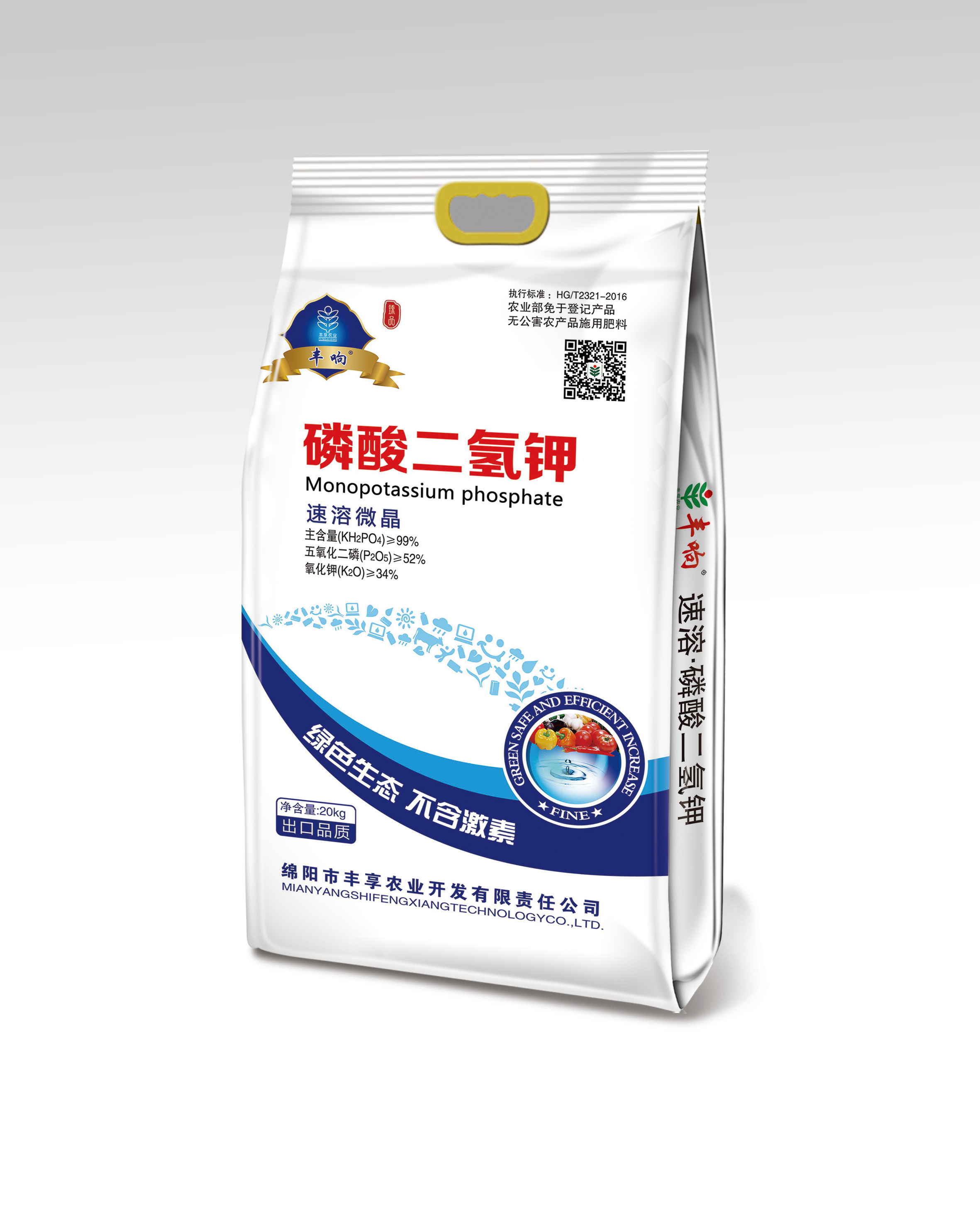 執(zhí)行標(biāo)準(zhǔn)HG/T2321-2016,豐響熱法99%高品質(zhì)磷酸二氫鉀。能有效為植物提供速效磷鉀,壯根、狀桿、抗旱、抗寒、抗逆、抗倒伏、促花、?;?、保果、改善品質(zhì)、提高產(chǎn)量。
